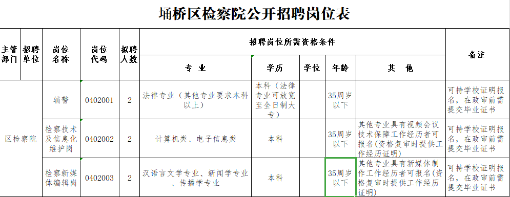 2020-11-14 23:22:53閱讀()安徽省宿州市埇橋區(qū)檢察院按照《宿州市埇橋區(qū)人民政府辦公室關(guān)于印發(fā)埇橋區(qū)政府購(gòu)買服務(wù)崗位管理暫行辦法(試行)的通知》(埇政辦秘〔2017〕118號(hào))和《宿州市埇橋區(qū)人民政府辦公室關(guān)于印發(fā)進(jìn)一步規(guī)范埇橋區(qū)政府購(gòu)買服務(wù)崗位管理實(shí)施意見的通知》(埇政辦秘〔2020〕16號(hào))的有關(guān)規(guī)定,宿州市埇橋區(qū)人民檢察院委托埇橋區(qū)勞動(dòng)事務(wù)代理中心,以政府購(gòu)買崗位的形式面向社會(huì)公開招聘檢察工作人員,現(xiàn)就有關(guān)事項(xiàng)公告如下: