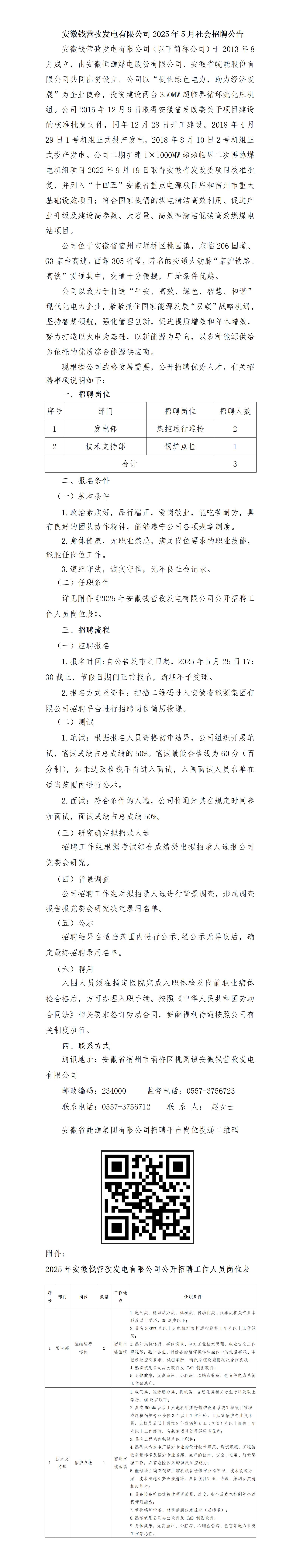 2025年安徽錢營(yíng)孜發(fā)電有限公司5月社會(huì)招聘公告
