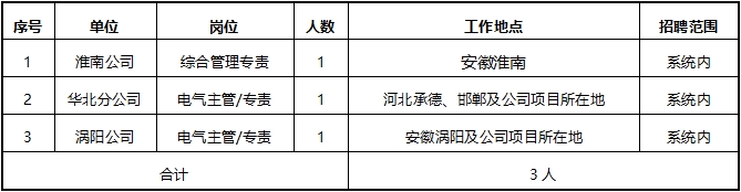 根據(jù)工作需要,現(xiàn)招聘安徽公司所屬單位相關(guān)崗位。具體事項(xiàng)公告如下: