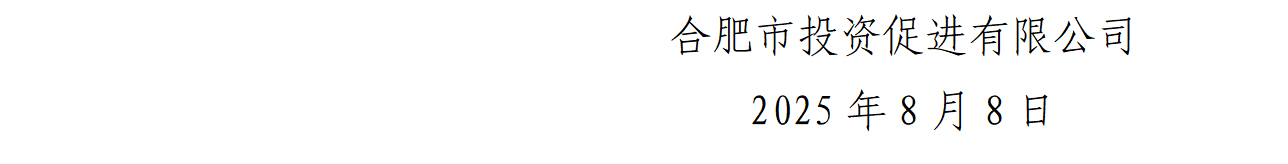 2025-08-08 19:01:21閱讀()合肥人力合肥市投資促進有限公司(以下簡稱“市投促公司”)成立于 2024年9月,注冊資本伍仟萬。市投促公司致力于打造專業(yè)化、市場化、國際化的招商隊伍,賦能提升全市招商團隊的產(chǎn)業(yè)謀劃、資本籌劃、資源整合能力,打造全面服務招商落地的“國有專業(yè)投行”,助力合肥市產(chǎn)業(yè)高質量發(fā)展