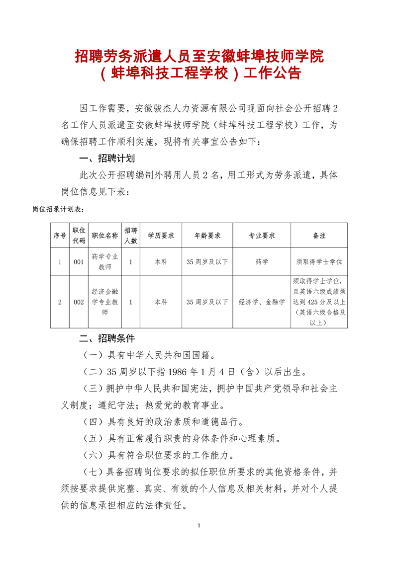 2021年蚌埠技師學院(蚌埠科技工程學校)招聘工作公告
