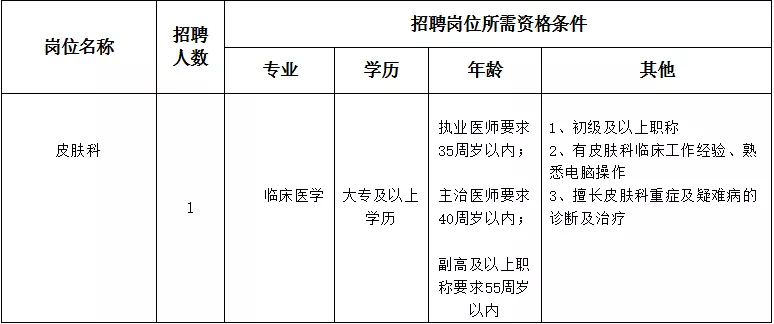 因?qū)W科建設(shè)和業(yè)務(wù)發(fā)展需要,經(jīng)研究,醫(yī)院面向社會公開招聘皮膚科衛(wèi)生專業(yè)技術(shù)人員。現(xiàn)將有關(guān)事項公告如下: