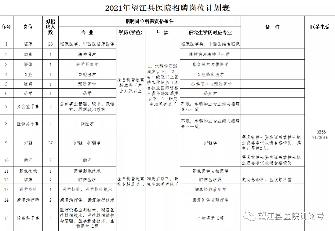 熱忱歡迎望江籍在外工作符合招聘條件的醫(yī)務(wù)人員踴躍報考,為家鄉(xiāng)醫(yī)療衛(wèi)生事業(yè)貢獻力量,為家鄉(xiāng)人民健康保駕護航。