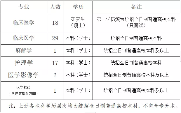 (3)臨床醫(yī)學(xué)本科畢業(yè)生須為一本院校畢業(yè)生;碩士研究生須是全日制普通高校學(xué)歷,第一起點(diǎn)學(xué)歷要求為國家統(tǒng)招全日制普通高校本科相應(yīng)專業(yè)或西醫(yī)臨床醫(yī)學(xué)專業(yè)。