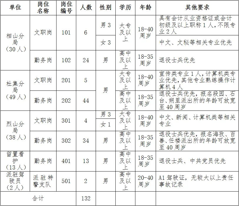根據(jù)工作需要,淮北市公安局面向社會(huì)公開招聘輔警,現(xiàn)將具體事項(xiàng)公告如下: