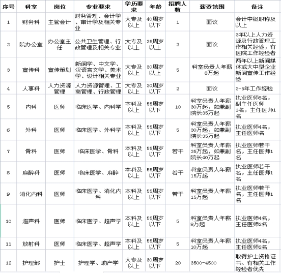 因醫(yī)院發(fā)展需要,現(xiàn)面向社會誠聘工作人員若干,具體要求如下: