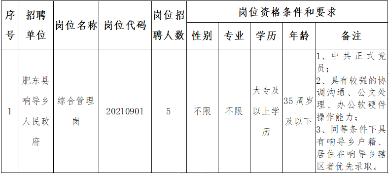 (七)具備省公務(wù)員主管部門和《肥東縣農(nóng)村村級工作人員管理辦法(試行)》規(guī)定的擬任職位所要求的其他資格條件;