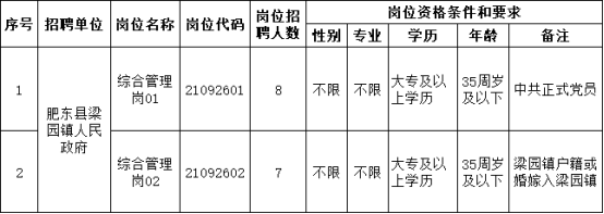 (七)具備省公務(wù)員主管部門(mén)和《肥東縣農(nóng)村村級(jí)工作人員管理辦法(試行)》規(guī)定的擬任職位所要求的其他資格條件;