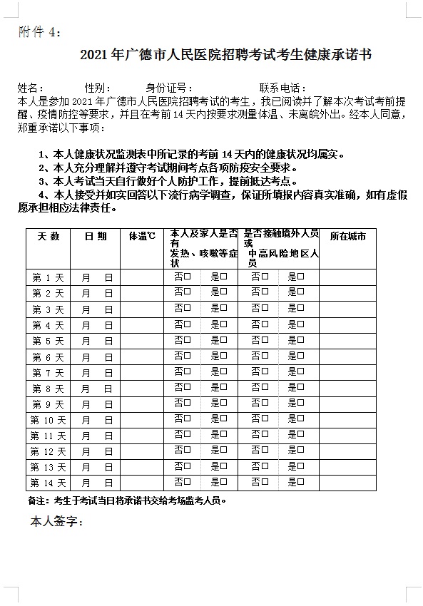 4、健康承諾書