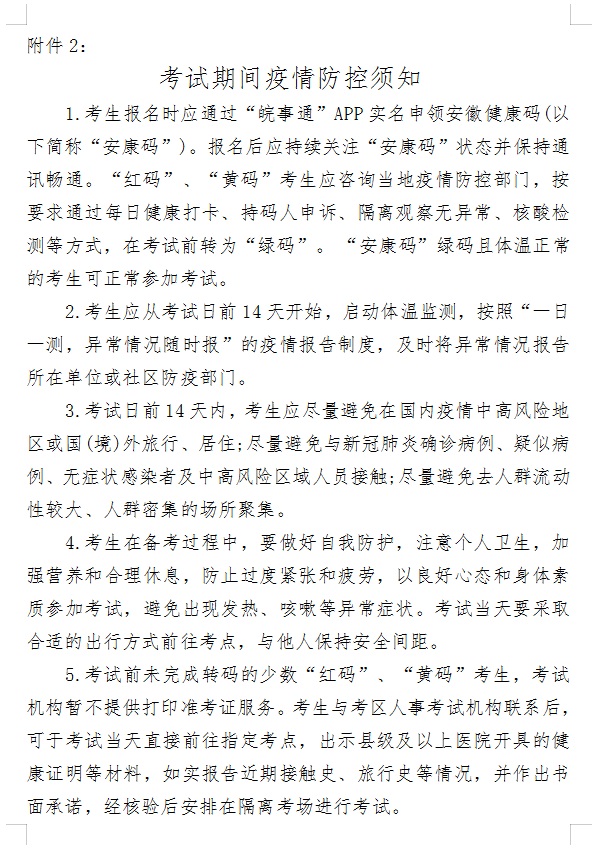 2、考試期間疫情防控須知