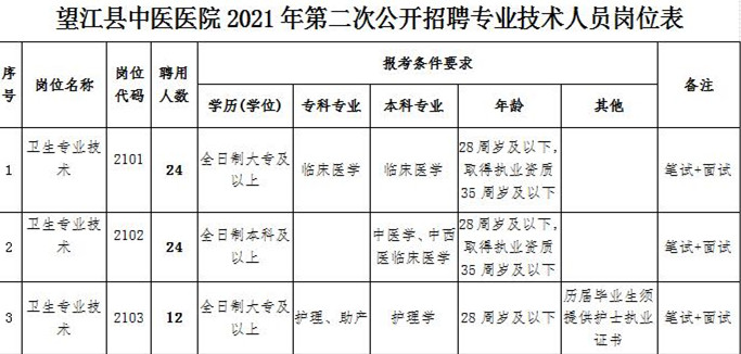 2021年安慶望江縣中醫(yī)醫(yī)院第二次公開招聘專業(yè)技術(shù)人員公告