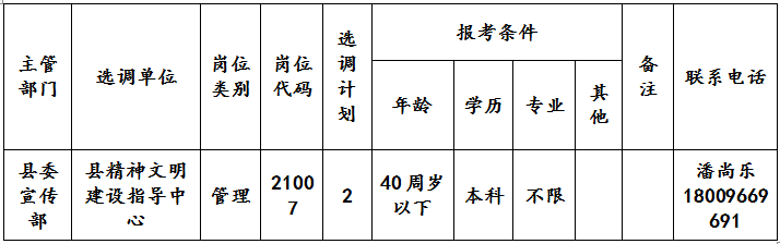 2021-12-20 20:58:15閱讀()懷寧縣人民政府《2021年懷寧縣縣直事業(yè)單位公開選調(diào)工作人員公告》已于12月13日在縣人力資源和社會保障局網(wǎng)站發(fā)布。根據(jù)工作需要,報經(jīng)縣委編委領(lǐng)導(dǎo)同意,新增選調(diào)計劃2個,現(xiàn)予以公告,詳見附表。