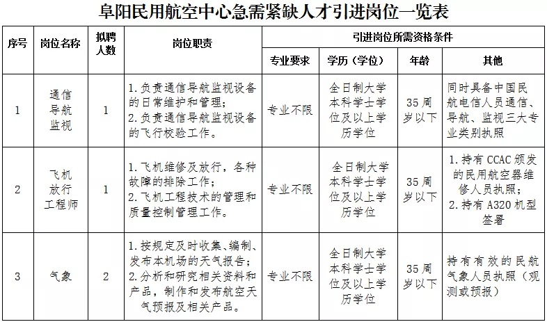 根據阜陽民航快速發(fā)展需要,阜陽民用航空中心現面向社會公開引進3個崗位4名急需緊缺人才,現公告如下: