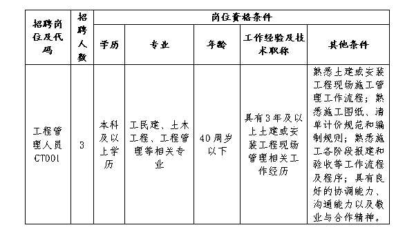 現(xiàn)根據(jù)公司項(xiàng)目開(kāi)發(fā)需要,招聘派遣制員工3名。有關(guān)要求及事項(xiàng)公告如下: