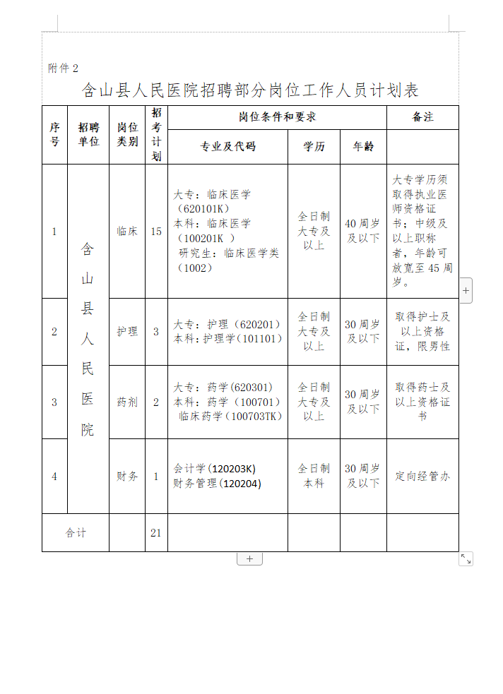 附件2:《含山縣人民醫(yī)院招聘部分崗位工作人員計(jì)劃表》