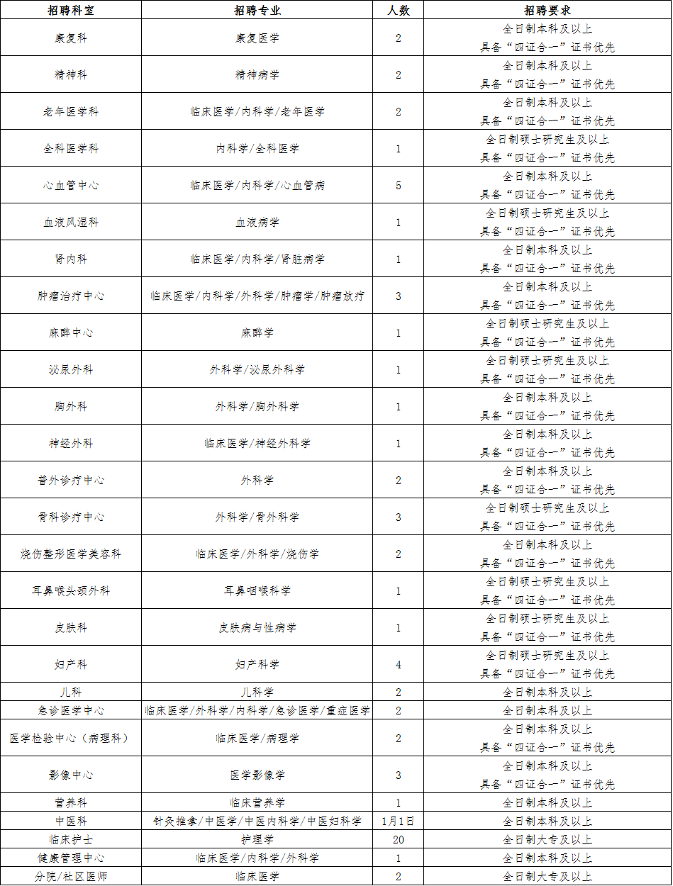 3、除以下崗位外,歡迎各科室中、高級(jí)職稱(chēng)、各學(xué)科帶頭人洽談合作。