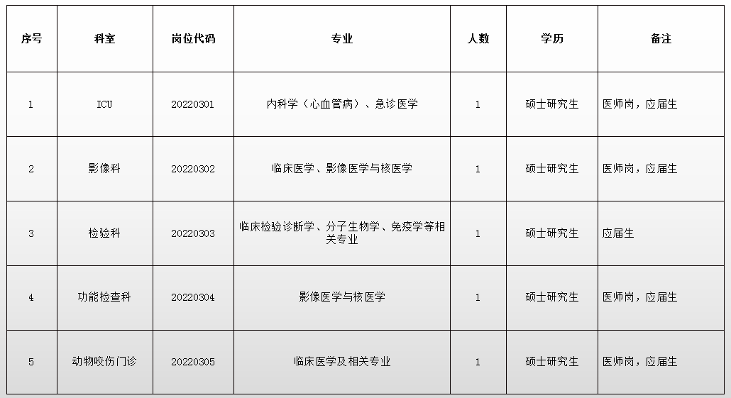 (五)專業(yè):專業(yè)對口,醫(yī)學類崗位要求本科專業(yè)為5年制/4年制臨床醫(yī)學或與碩士研究生專業(yè)一致,非醫(yī)學類崗位要求本科專業(yè)與碩士研究生專業(yè)或崗位相關。