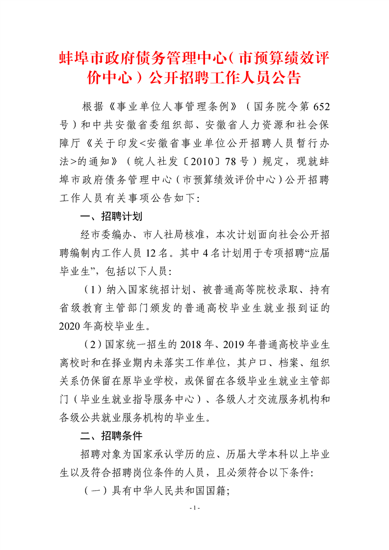 附件:蚌埠市政府債務(wù)管理中心(市預(yù)算績(jī)效評(píng)價(jià)中心)公開(kāi)招聘工作人員計(jì)劃表