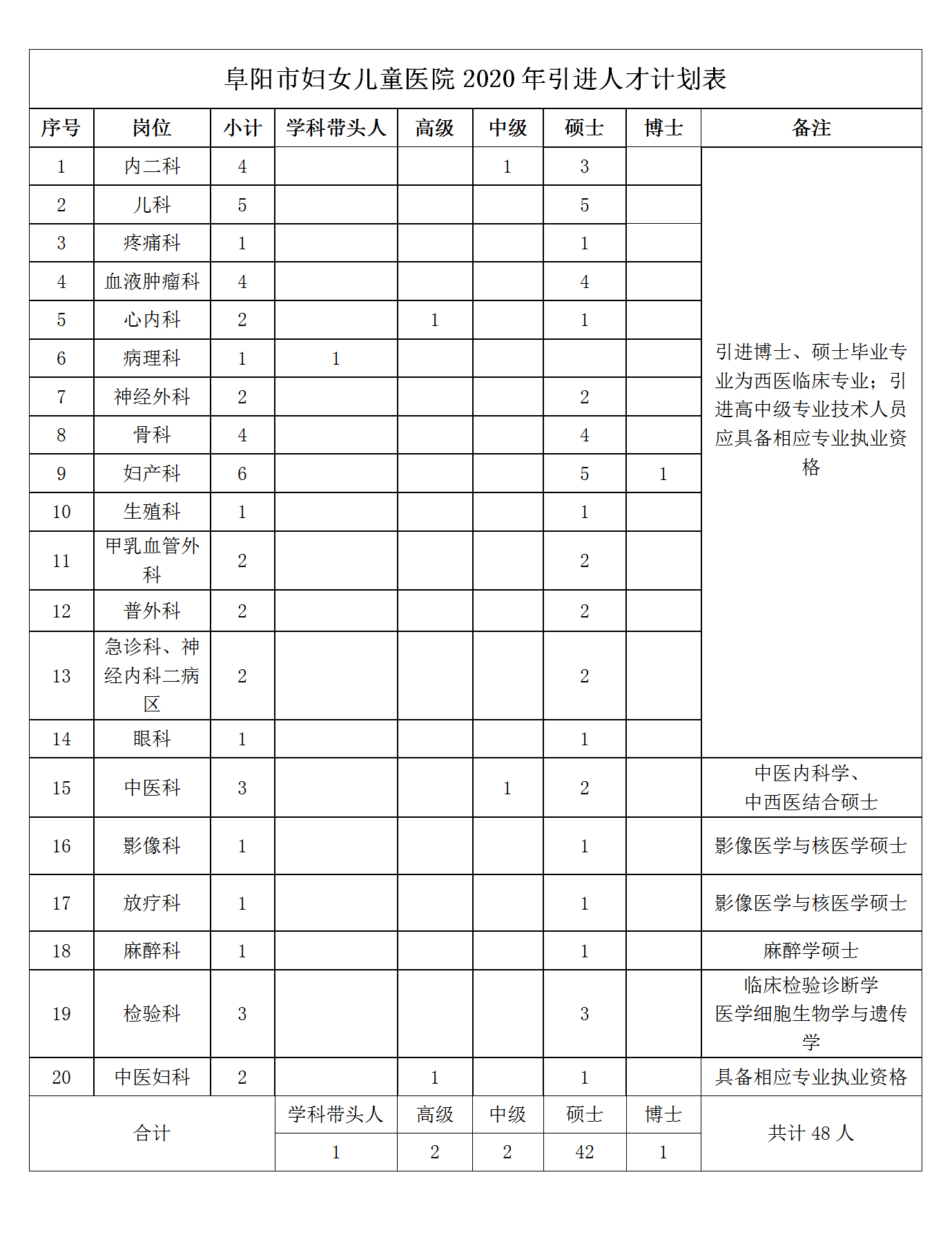 2020年阜陽(yáng)市婦女兒童醫(yī)院引進(jìn)醫(yī)療人才崗位計(jì)劃公告