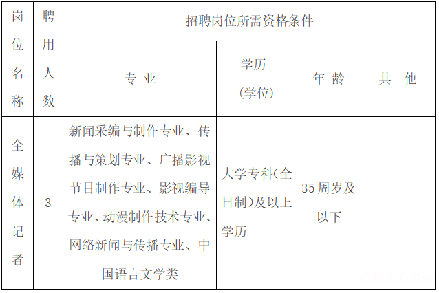 通過第三方勞務(wù)派遣方式招聘全媒體記者3名。