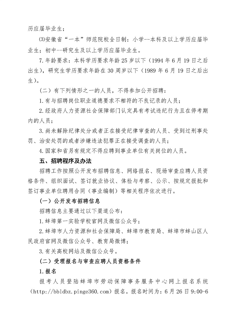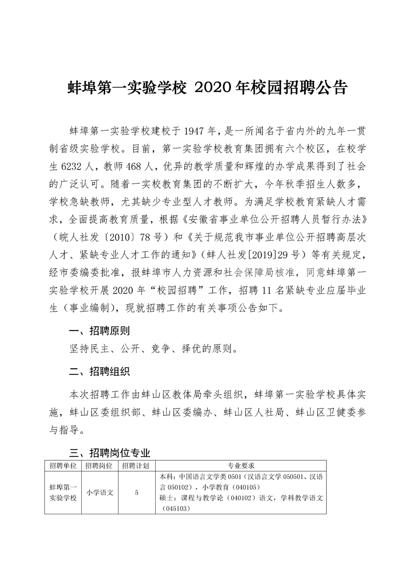 2020年蚌埠第一實驗學校校園招聘公告