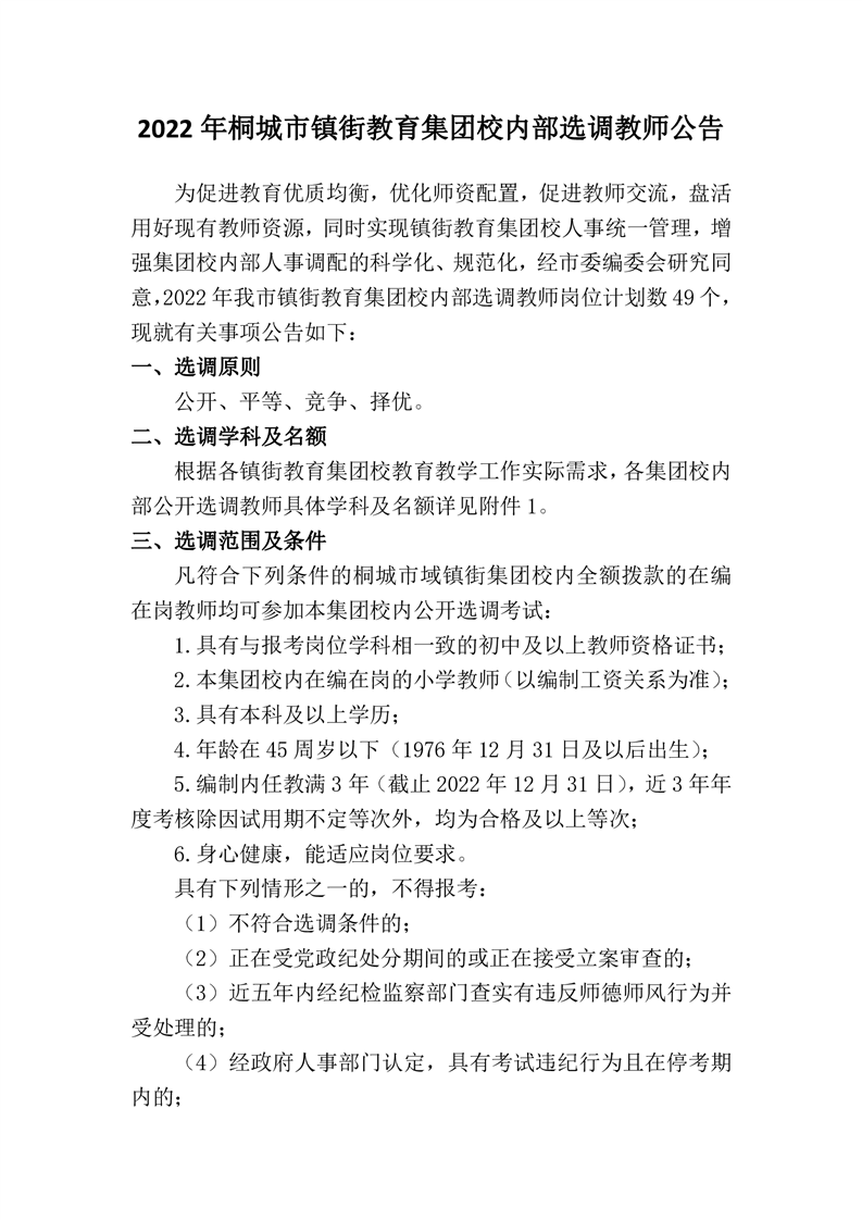 2022年安慶桐城市鎮(zhèn)街教育集團校內部選調教師公告