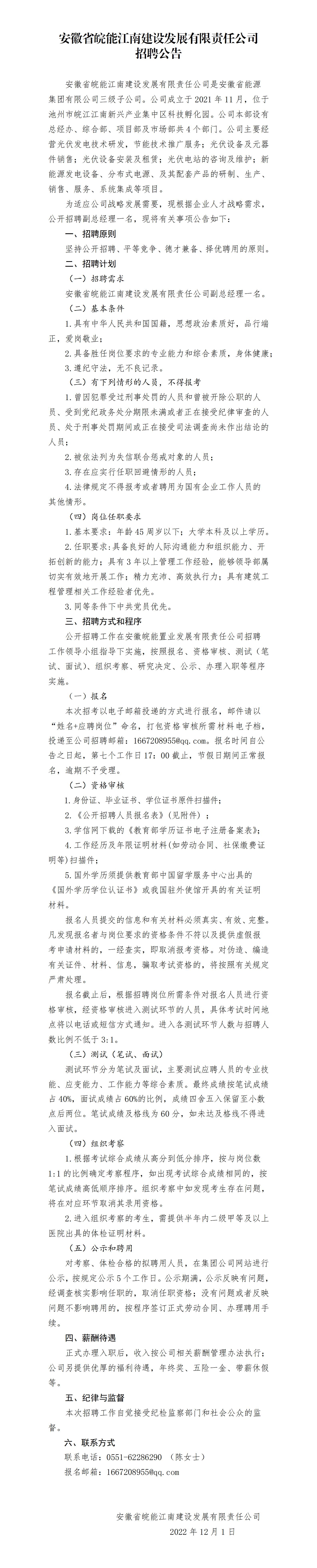 2022年安徽省皖能江南建設發(fā)展有限責任公司招聘公告