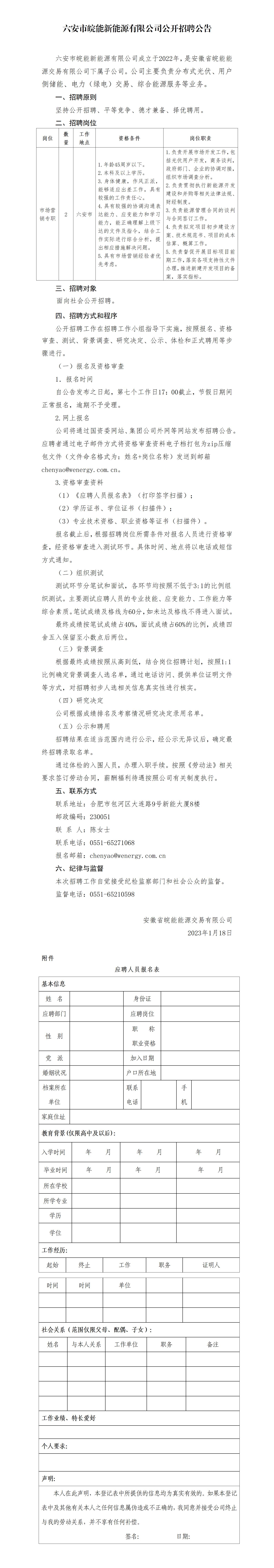 2023年六安市皖能新能源有限公司公開招聘公告