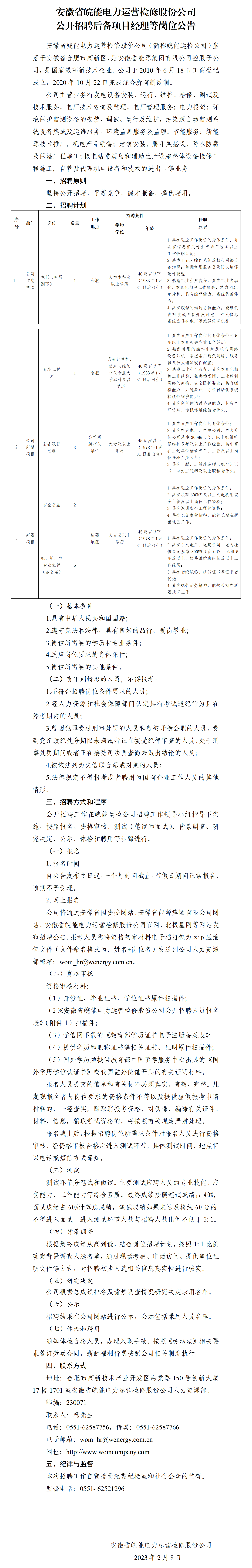 2023年安徽省皖能電力運(yùn)營檢修股份公司公開招聘后備項(xiàng)目經(jīng)理等崗位公告
