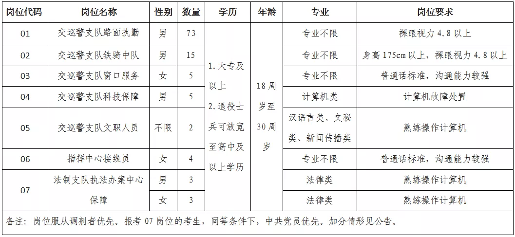 1.本次招聘警務(wù)輔助人員,主要崗位分別為交巡警支隊從事路面執(zhí)勤、窗口服務(wù)、科技保障崗位和指揮中心接線員、法制支隊執(zhí)法辦案中心辦案場所保障崗位。