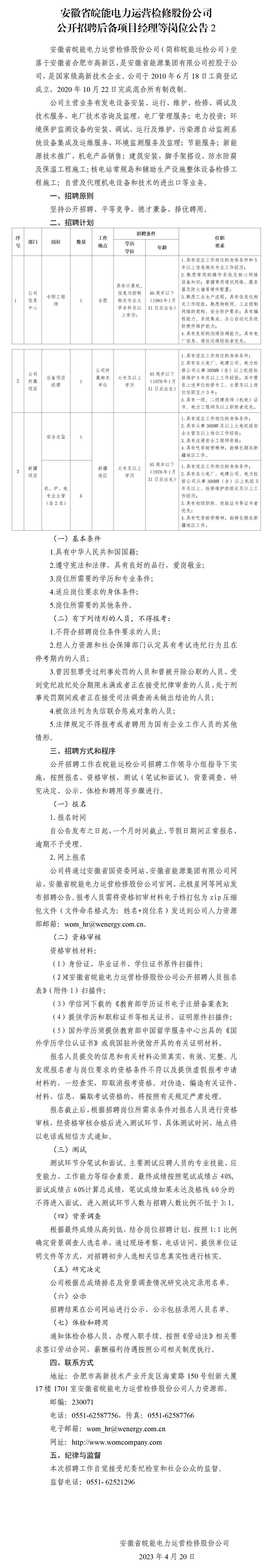 2023年安徽省皖能電力運(yùn)營檢修股份公司公開招聘后備項(xiàng)目經(jīng)理等崗位公告