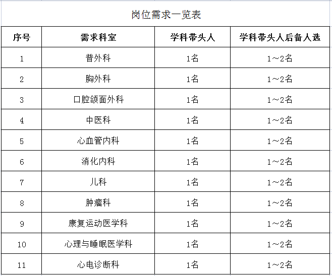 (3)職稱(chēng):臨床科室具有衛(wèi)生系列正高職稱(chēng)、教學(xué)系列副高職稱(chēng)。