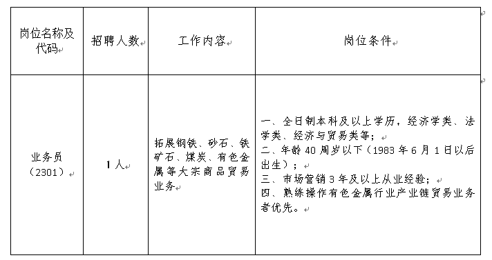 銅陵市建投商貿(mào)有限責(zé)任公司于2018年4月26日注冊(cè)成立,為銅陵市國(guó)有企業(yè)?,F(xiàn)因業(yè)務(wù)發(fā)展需要,面向社會(huì)招聘勞務(wù)派遣工作人員1名。具體事項(xiàng)公告如下: