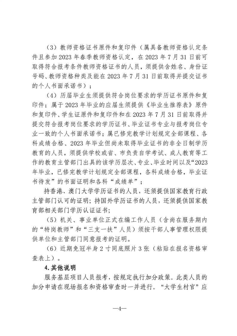 (四)具有符合招聘崗位要求的教師資格證書(shū)(含已具備教師資格認(rèn)定條件且參加2023年春季教師資格認(rèn)定,在2023年7月31日前可取得教師資格證書(shū)的人員);