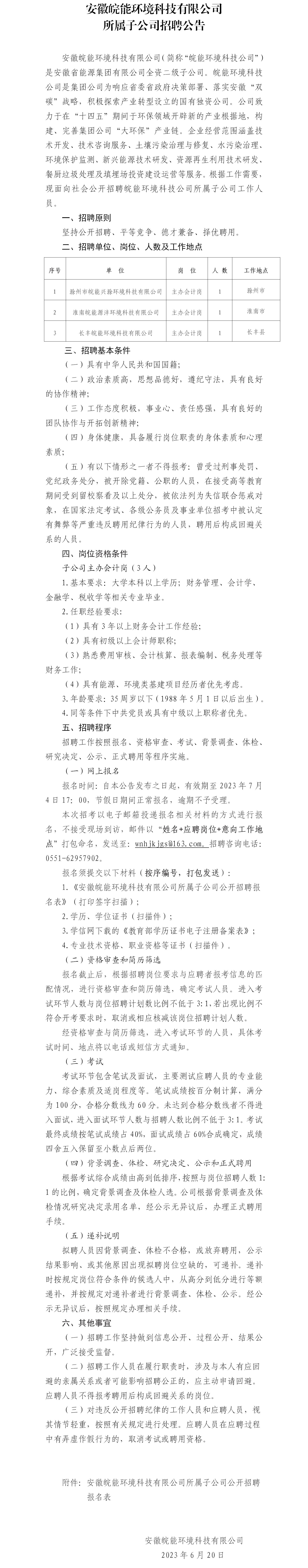 2023年安徽皖能環(huán)境科技有限公司所屬子公司招聘公告