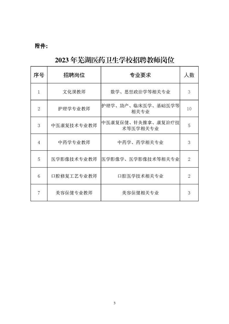 2023年蕪湖醫(yī)藥衛(wèi)生學(xué)校教師招聘公告