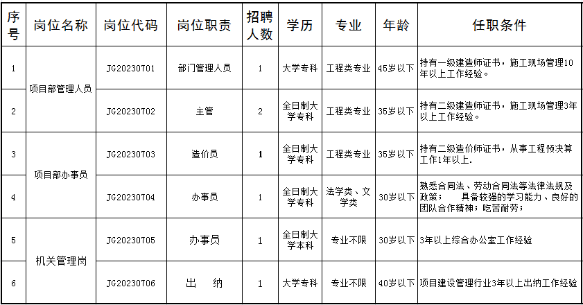 公開(kāi)招聘人員崗位表中涉及“年齡條件”的如“45歲以下”為“1978年7月31日(含)以后出生”(其他涉及年齡計(jì)算的依此類推);工作經(jīng)歷要求,截止時(shí)間為2023年7月31日。