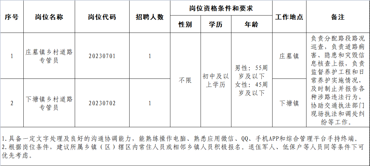 2、崗位及要求中“年齡”“55周歲及以下”為“1967年8月1日(含)以后出生”。“45周歲及以下”為“1977年8月1日(含)以后出生”。