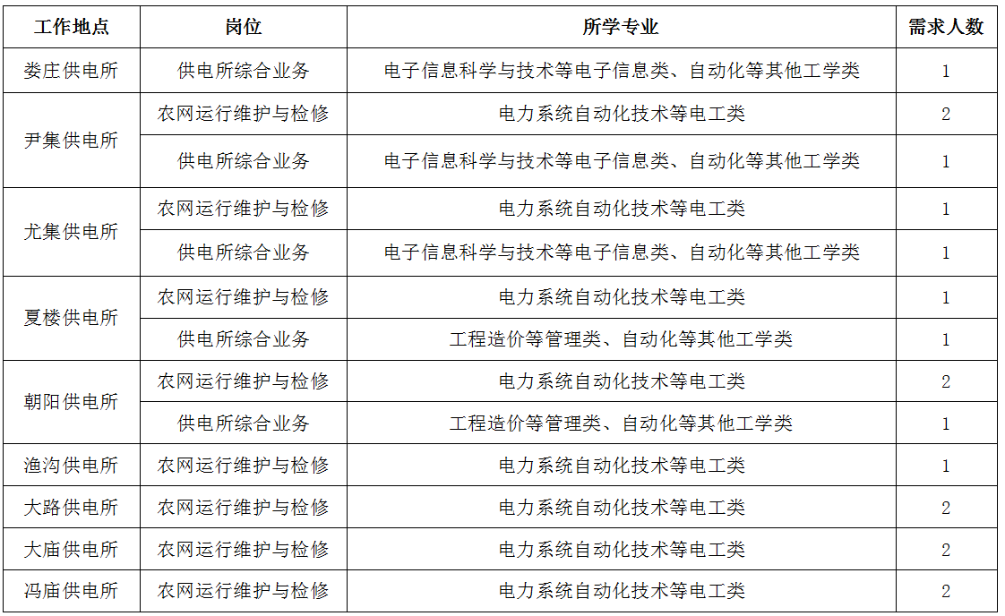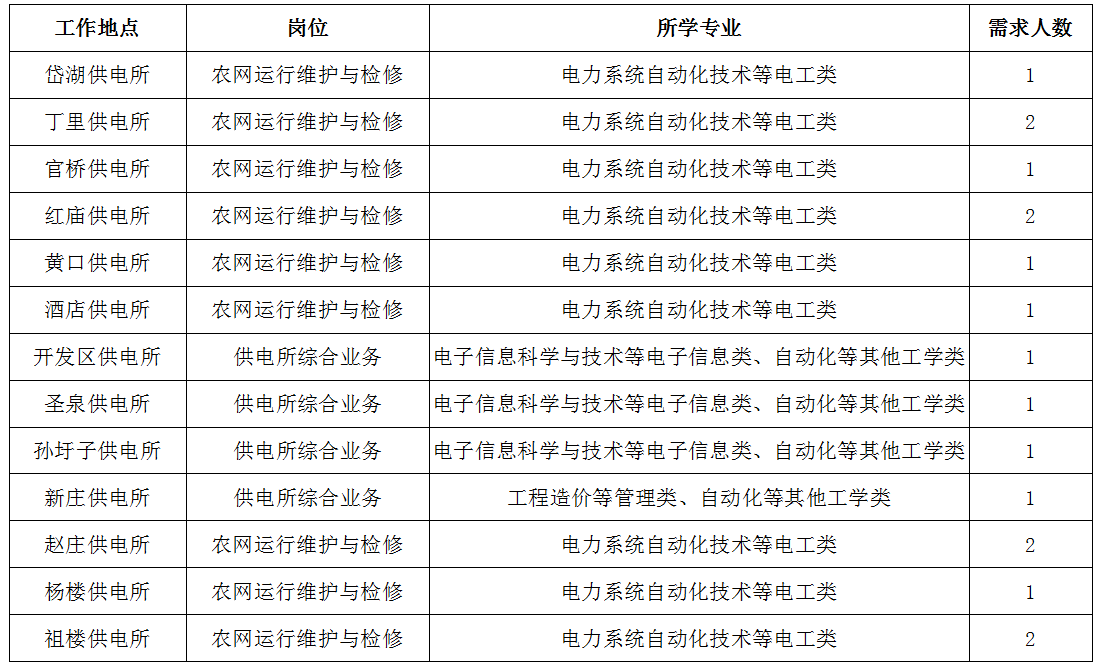 3.電工類專業(yè)為全日制大專及以上學歷畢業(yè)生,其他專業(yè)為全日制本科及以上學歷畢業(yè)生。