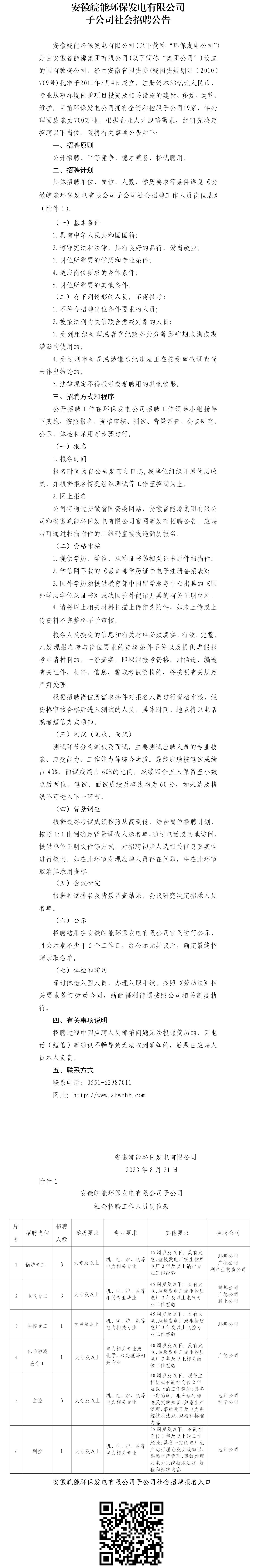 2023年安徽皖能環(huán)保發(fā)電有限公司子公司社會招聘公告