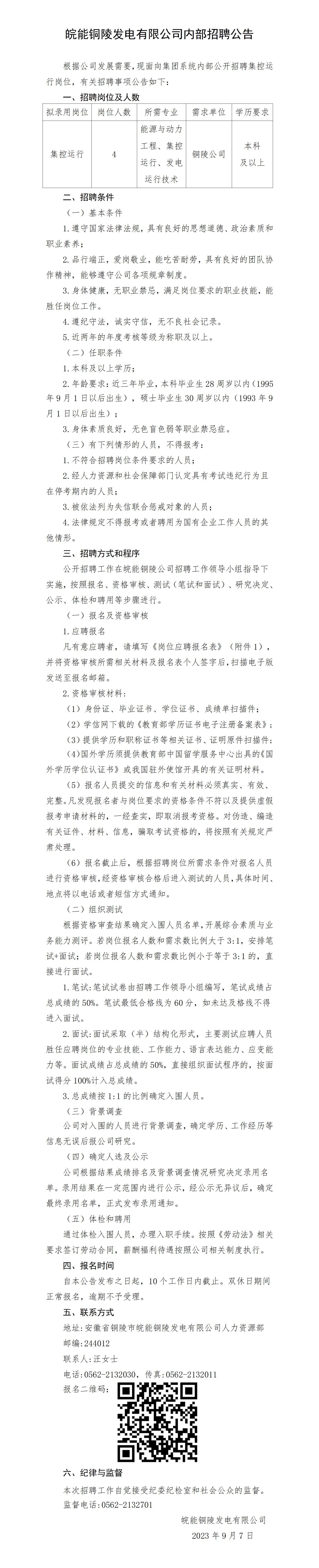 2023年皖能銅陵發(fā)電有限公司內(nèi)部招聘公告