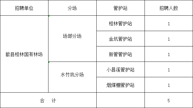 通過(guò)第三方勞務(wù)派遣方式招聘歙縣桂林國(guó)有林場(chǎng)護(hù)林員共5名。