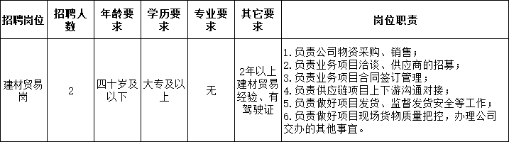 因工作需要,蚌埠城創(chuàng)人力資源服務(wù)有限公司現(xiàn)招聘2名工作人員,派駐蚌埠城信建材科技有限公司工作?,F(xiàn)將有關(guān)事項公告如下: