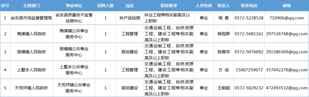 引進(jìn)計(jì)劃人數(shù)5名,均為事業(yè)編制。重點(diǎn)引進(jìn)林業(yè)工程、交通運(yùn)輸工程、自然資源工程、建設(shè)工程等專業(yè)的緊缺急需人才。